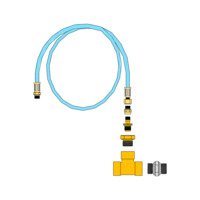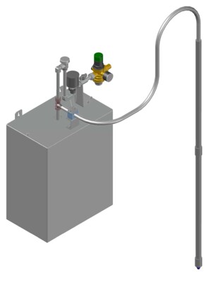 Wasserbetriebene Mischungsausrüstung für Scheibenwasser. Stellbar zwischen 20-50%. Wandinstallation. Inkludiert Saugrohr für Anschluss zu Konzentrat.