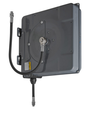 Geschlossener Schlauchaufroller aus Metall für verschiedene Medien.