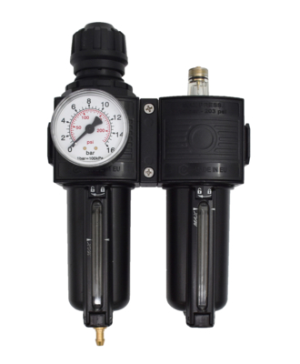Luftbehandlungseinheit. Zur Schmierung, Regulierung und Filterung von Luft. Diese Luftbehandlungsgeräte kombinieren bestes Design mit bewährten Materialien und Produktionsverfahren. Material: Zink.