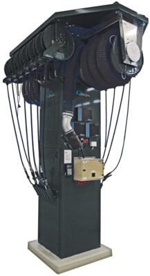 Kann mit verschiedenen Produkten ausgerüstet werden. Einzel-Servicecenter für Öl-, Fett-, Frostschutz., Luft- und Abgas- System. Für bis zu 16 Schlauchufroller.
