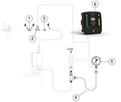 Verhindert, dass Luft in das Pumpenrohr eindringt und die Pumpe trocken läuft, wenn das Fass leer ist. Drucksensor, flüssigkeitsbeständig. Ausrüstung wird unmontiert als Bausatz geliefert, bestehend aus: Magnetventil, 24 V DC, G1/4" (f) (48052), Bedienfeld, (23829), Drucksensor (23062), Manometer