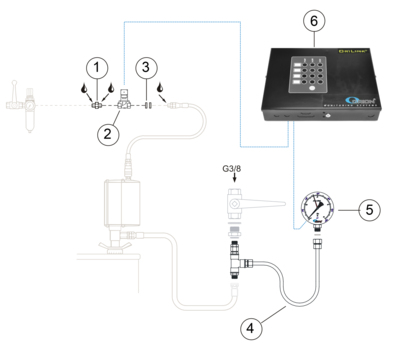 um Luft in System zu verhindern. Besteht aus drei Magnetventilen 24V AC G1/4” 48052, Kontrollpanel 23430 und Druckwacht 23062 mit Manometer.