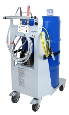 Suction removal directly from vehicle tanks. The unit includes a 120 l container, air operated pump with a capacity of 7 l/min, fluid filter, hose and adaptors. The unit meets all the requirements for flammable environments.