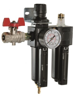 These air treatment units combine the best of design with proven materials and production methods. They can handle air flows up to 900 l/min.Material: Zinc. Volume 40 cm³ (filter/regulator), 50 cm³ (lubricator), max working pressure 1,2 MPa (12 bar), temp.+5° to +60 °C