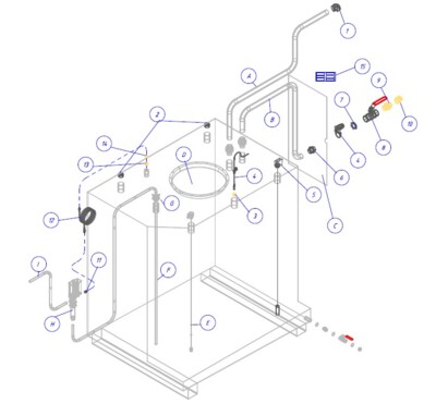 Including level gauge, overfilling protection, filling connection for trucks, ventilation cap for venting, plugs on the extra connection points and a hose with adaptors for the pressure relief protection of the pump.