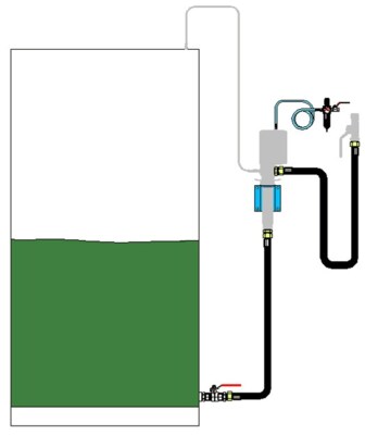 Installation kit for a remote wall mounted air operated pump with a suction hose connected to a tank