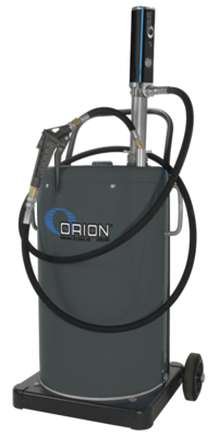 Consisting of a air operated pump, fitted to the lid of a protective container, oil hose and oil control valve. The container is mounted on a trolley fitted with two large rubber wheels and two swivel castors.