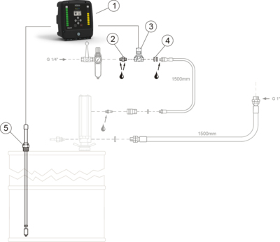 Used to prevent air from entering the pump tube and dry running the pump when the drum is empty. Level sensor made of plastic, resistant to fluids commonly supplied in 208 litre drums. Equipment delivered unassembled in a kit consisting of the following: Solenoid valve, 24V DC, G1/4” (f) (48059), Control panel, (23829), Low level sensor (23171), (for alcohol use 23183)