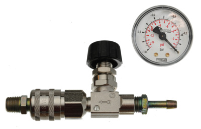 Consisting of shut-off valve, gauge, nipple, quick coupling and hose clamp