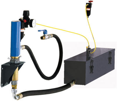Consists of a 25 litre collector tank with float switch and an air operated (1:1) transfer pump with wall bracket and all necessary oil and air line accessories.