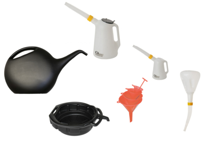 Garage kit. Includes the most used measures, funnels, container and oil drain.