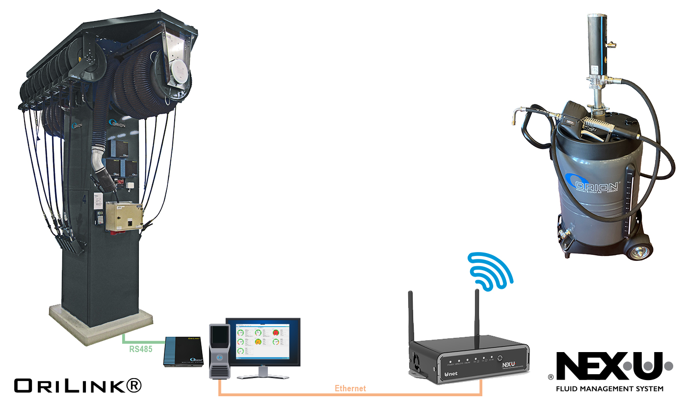 When fluid is to be dispensed via the mobile device, the mechanic uses the standard OriLink® system, enters the PIN code, work order number and volume. Using OriLink® we have built a solution that in turn sends a request to NEX·U·® to dispense fluid.