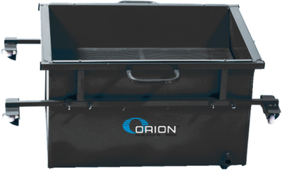 Recuperador de aceite usado para uso en foso con ruedas ajustables para montaje sobre los raíles del foso. Anchura ajustable. El recuperador puede ser vaciado por una bomba de aceite usado.