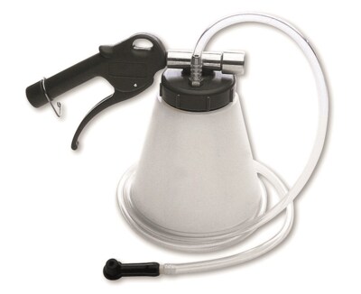 Dos versiones disponibles: Pistola para aspiración de residuos líquidos:. Puede ser utilizada para extracción de aceite en motores pequeños, como barcos, motos, etc., o para la extracción de residuos líquidos en alojamientos difíciles. Pistola para purga de frenos: Para purga del circuito de líquido de frenos de un vehículo, sin necesidad de accionar el pedal de freno, conectando la boquilla incluida al purgador del freno.