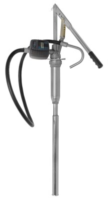 Bomba con un tubo telescópico de aspiración (500-900mm). La palanca puede ser montada en diferentes posiciones paracambiar el movimiento, longitud y capacidad. Se suministracon un tapón adaptador G2" (m). Capacidad 0.15 a 0.25litros/embolada. Contadores de línea.
