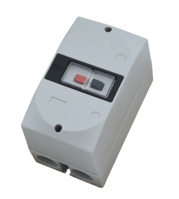 Arrancador de aspirador/protector de motor con botón de arranque Ser utilizado cuando no se utiliza ningun arrancador o unidad de control. Montado en una caja de plástico.