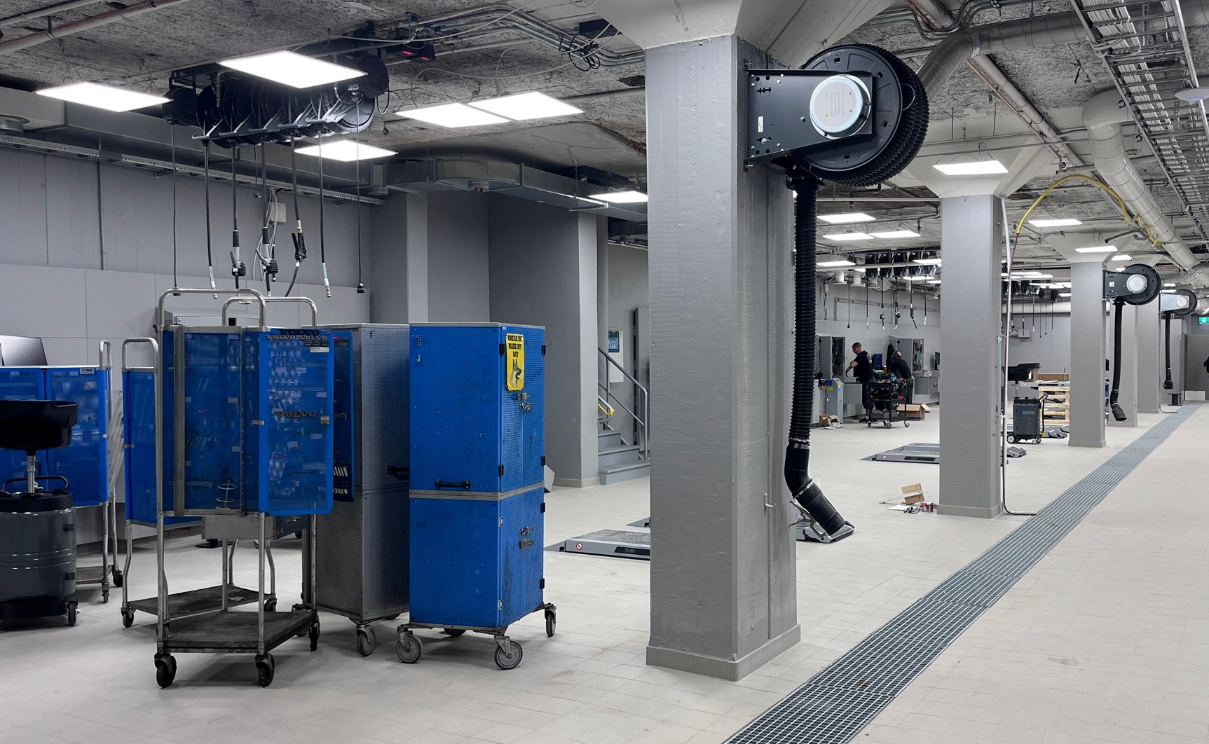 When the facilities start up using the VPS concept, it is important to have large spaces around the lifts, since they are two mechanics working on the same car. It is also important to have fluids, air, electricity & exhaust equipment close at hand, which often means an adjustment or relocation of the equipment.