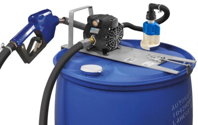 Support de pompe pour fûts en plastique ou IBC, pompe à membrane, tuyau d'aspiration de 1,5 m avec adaptateur de raccordement pour tube d'aspiration et tuyau de sortie de 3 m.