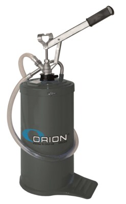 placée sur un réservoiren acier avec pédale, complet avec un tuyau de 1,5 m etun tube de sortie courbé.