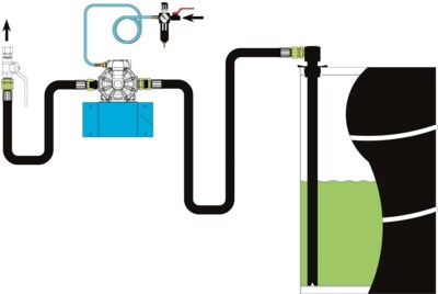 Kit de composants pour pompe à membrane 1 "entraînée par air comprimé murale pour l'huile dans les fûts, y compris tuyau de sortie mural de 1,5 m, tuyau d'aspiration de 2,5 m avec tuyau d'aspiration de 1 m et tuyau d'air de 1,5 m.