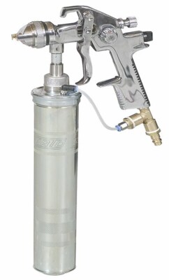 à pression pour pulvériser la graisse directement depuis des cartouches à visser. Le pistolet délivre une quantité constante tant que la gachette est actionnée. Le forme du jet peut être réglée pour être ronde ou plate. Raccords rapides pour Cejn