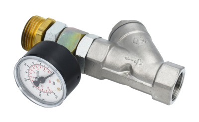 Crépine avec vacuomètre G1", le trou de la crépine est d'environ 0,5 mm. Montée du côté aspiration de la pompe.