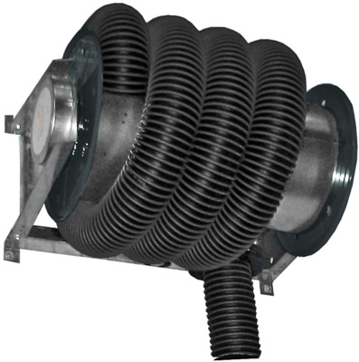 Enrouleur d'extraction électrique pour montage au plafond ou au mur. Adaptateur de raccordement Ø160 mm pour ventilateur ou système d'extraction centralisé et boîtier de commande inclus. Enrouleur complet avec tuyau (+200° C) 10 m Ø150 mm (6"). Il suffit d'ajouter une buse. Capacité max. du tuyau 10 m Ø150 mm (6") ou 13 m Ø100 mm (4"). 230V 50 Hz.