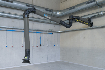 Bras oscillant d'extension. Bras avec support mural, tuyau et tube de ventilation Ø 160 mm et canal y compris le raccordement aux bras d'extraction. Bras d'extraction non