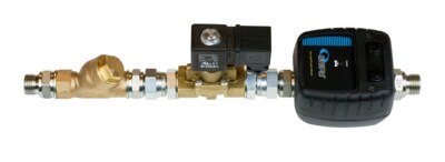 Compteur de ligne avec électrovanne. Indique une vanne ouverte. Passoire no 28022 incluse. Compteur d'huile 328 impulsions / l compteur 25060, électrovanne 28306, raccordement 5 MPa (50 bar) G1 / 2 "(m)