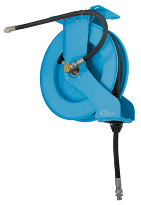 Open slanghaspel voor lucht, water, olie en vet. Metalen uitvoering, grijs uitvoering. De luchthaspels hebben een eenvoudige slang met gevlochten versterking, en de olie en vethaspels hebben een hydraulische slang met staalinlage. Alle slangen zijn uitgerust met geperste koppelingen.