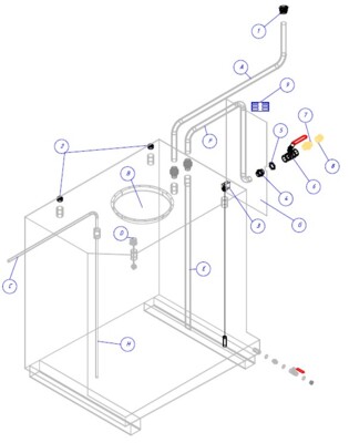 bevattende : peilmeter, verbindingsstukken, aansluiting voor ledigen tank, verluchtingskap, sluitstukken op extra verbindingspunten, en klep met aansluiting voor lediging onderaan de tank.