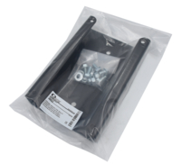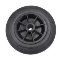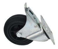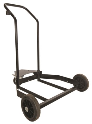 met drie wielen, 2 grote Ø 200 mmen één steunwiel Ø 100 mm, dat uitgerust is met een rem. De hendel wordt los bijgeleverd.