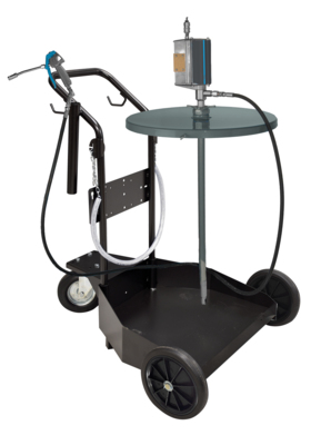 Состоит из насоса (коэффициент давления 80:1, производительность около 730 г/мин), трёхколёсной тележки, крышки для бочки, смазочного шланга, Z-образного поворотного соединения и клапана управления смазкой. Примечание! Прижимная пластина заказывается отдельно.