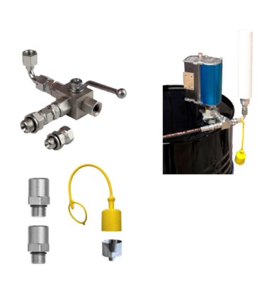 Комплект адаптера для использования смазочного насоса с пневматическим приводом для нормальной смазки с выпускным шлангом и смазочным клапаном, а также для заполнения винтовых патронов и рычажных смазочных насосов через заливные клапаны. Трехходовой клапан для смазки, адаптер против насоса, адаптер для винтовых картриджей, пылезащитная крышка и клапаны наполнения включены. Пустые винтовые картриджи заказываются отдельно.