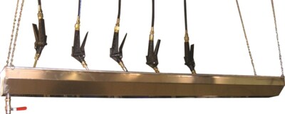 Med 4st 2 meters kedjor. Placeras under slangupprullare för att förhindra vätskor att droppa på golvet. Tillverkad i rostfri plåt.